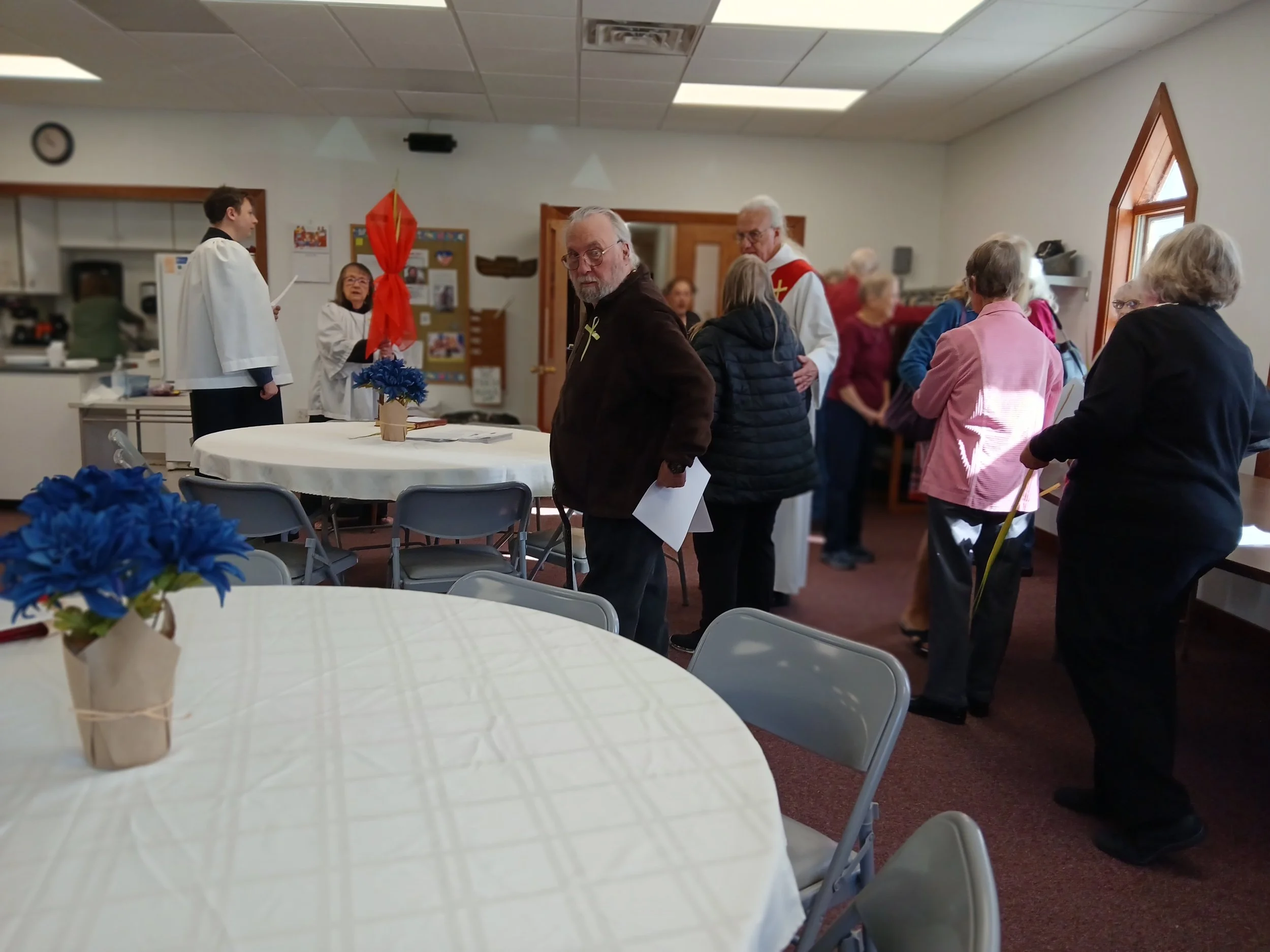 Palm Sunday, March 29, Preparing to process from Latham Hall to Sanctuary.