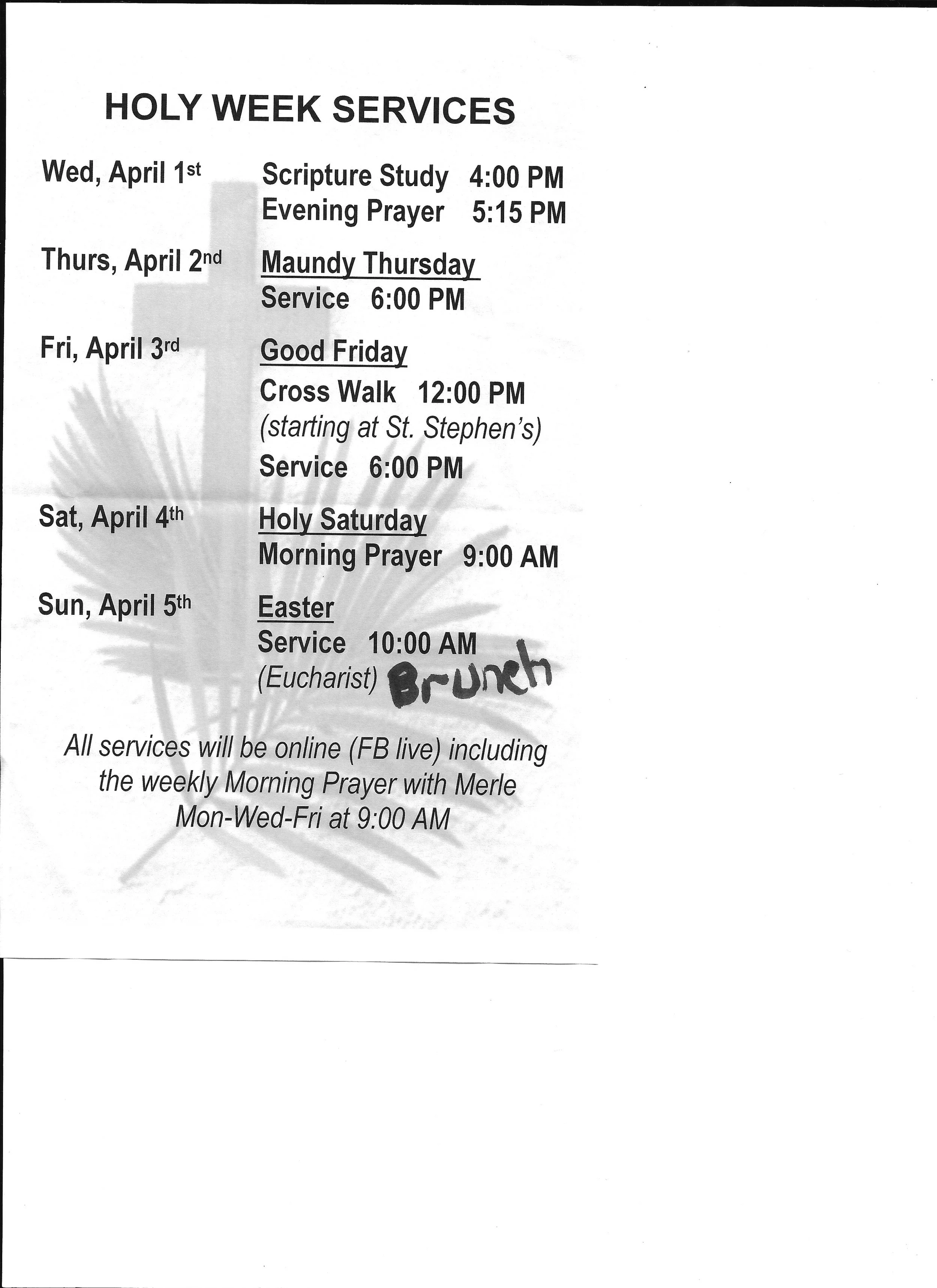 And of course, all of our services will be on live on Friends of St. Stephen’s, a private group on Facebook